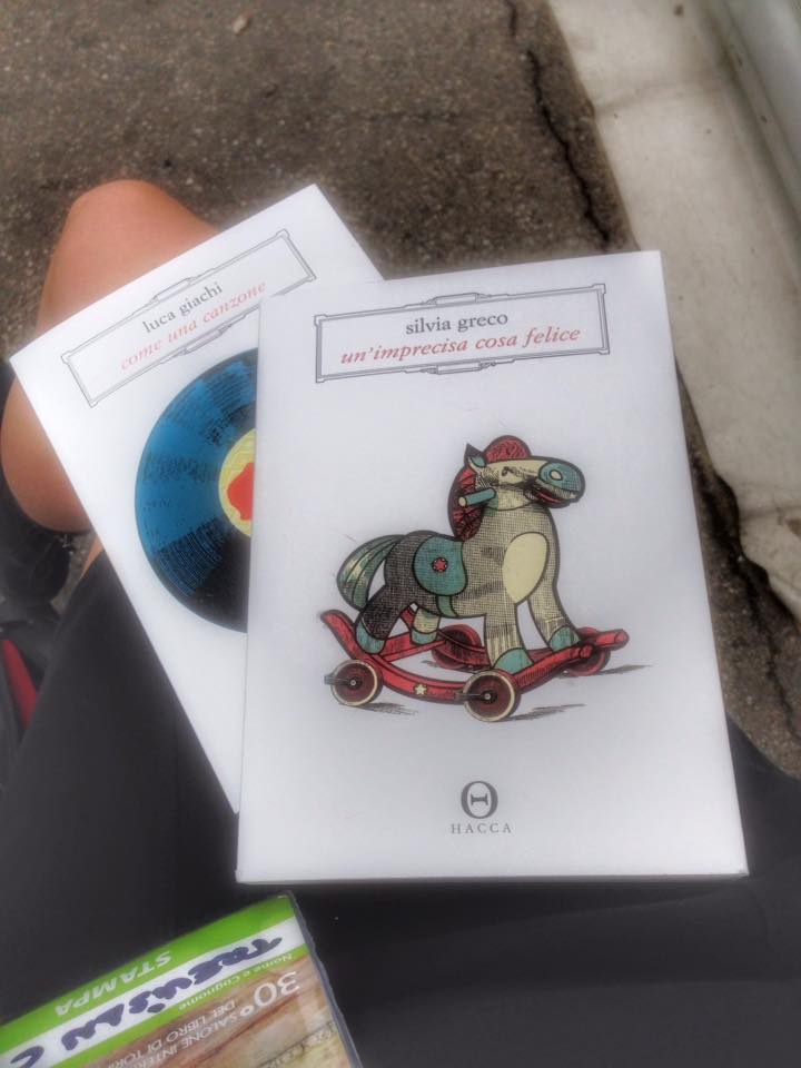 Il mio battesimo a SalTo è sempre lo stesso: baci, abbracci e selfie con la mia editrice preferita, la più bella del Salone, Francesca Chiappa, e recupero di due delle sue ultime uscite preziose Hacca Edizioni. “Un’imprecisa cosa felice” di Silvia Greco l’avevo già rubato a metà leggendolo di straforo al Luna’s Torta e ora posso completare la meraviglia. Luca Giachi mi ha, invece, conquistata con i suoi “10 motivi per non leggere questo libro”, pubblicati sul blog di