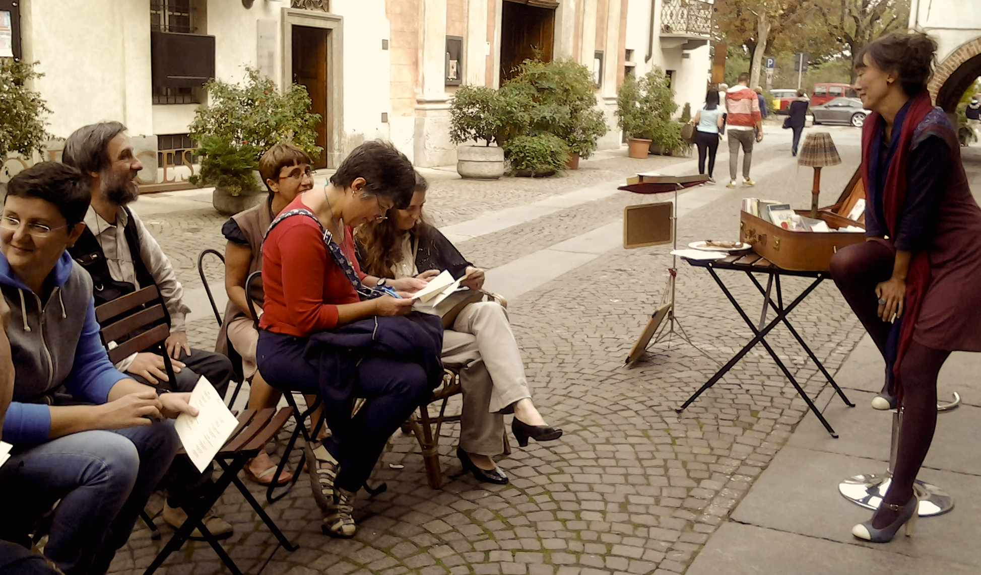 COSA: 2 ore di conversazioni, piccoli giochi di relazione, letture a tema, per piccoli gruppi. Nel luogo concordato con l’ospite (casa, ristorante, libreria, giardino,…). Un modo originale per conoscersi attraverso pagine, parole, intuizioni e memorie.
