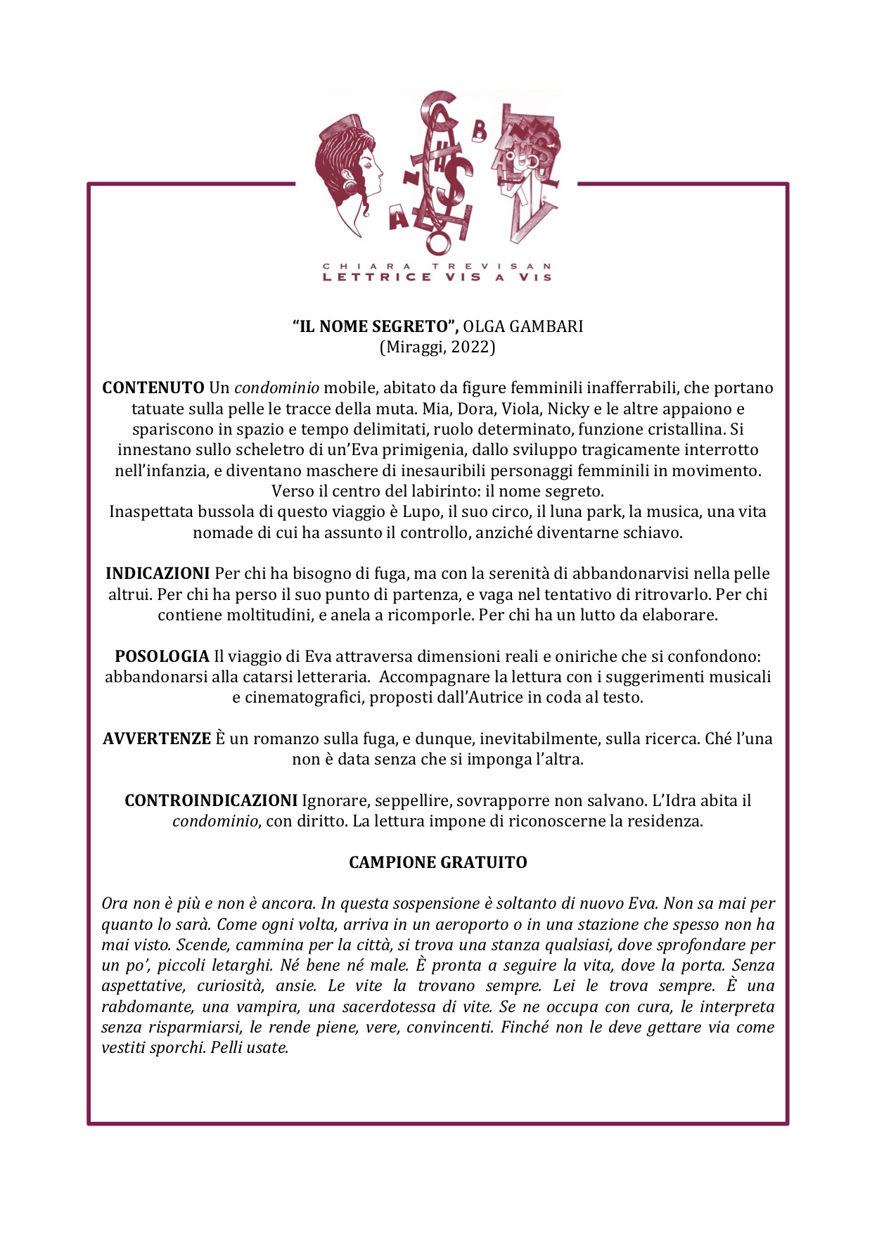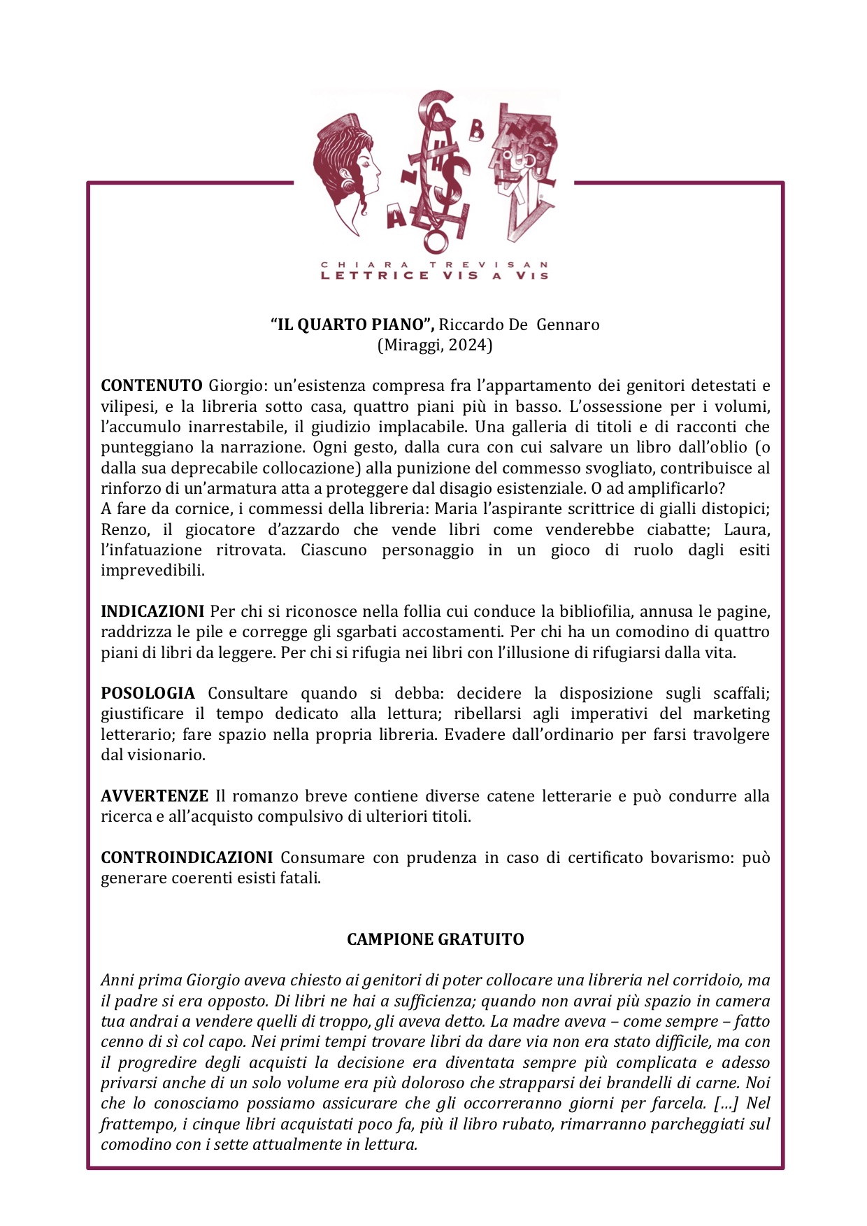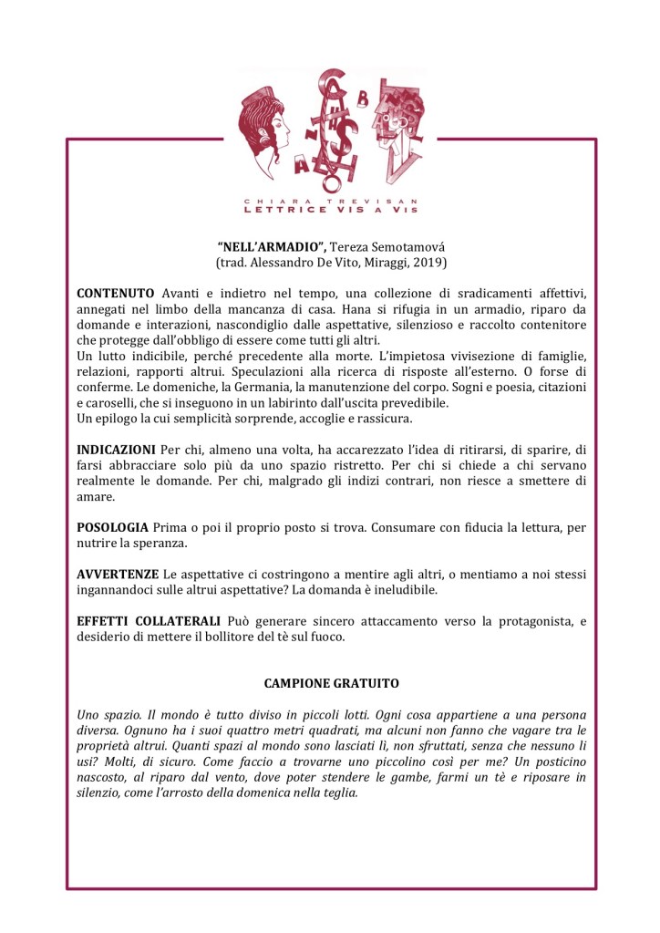 LIBRERIA: Inserito nel catalogo della Lettrice vis-à-vis