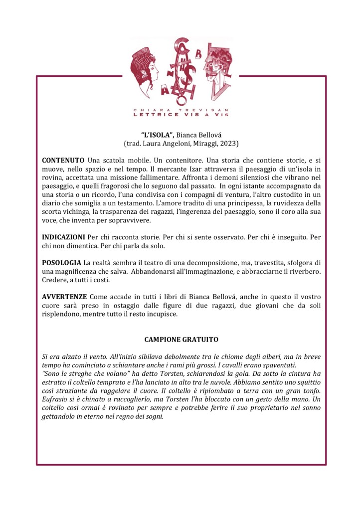 LA MIA LETTURA: Un’isola è uno spazio finito, circoscritto, nel quale più netto si fa il confronto fra le dimensioni.