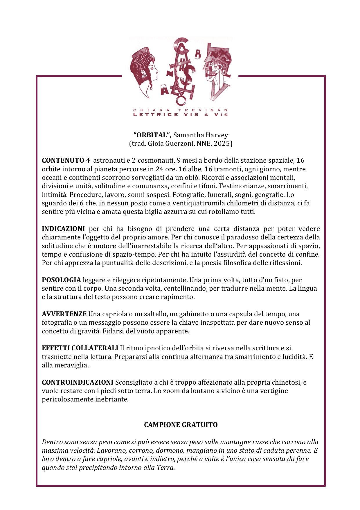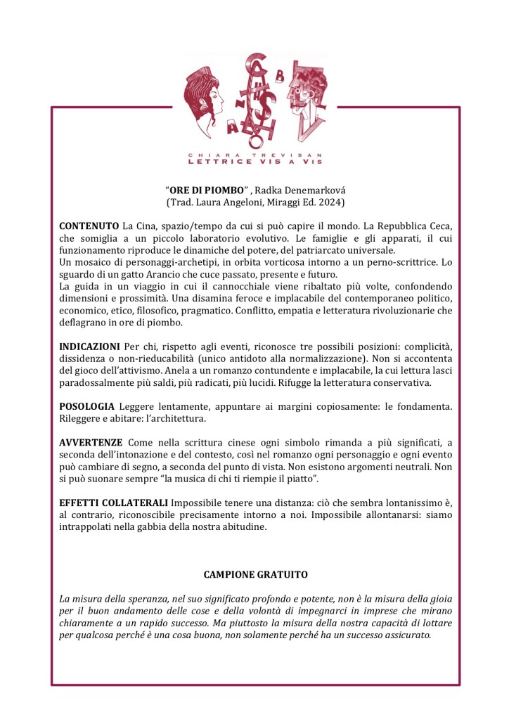 INDICAZIONI: per una somministrazione di realtà; per caleidoscopi verbali; per ascoltarsi dalla culla al tramonto; per opposti inconciliabili; per esplorare visioni politiche